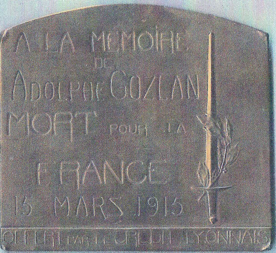 Adolphe GOUSLAN était le frère de mon beau-père. Il est "Mort pour la France" le 15 mars 1915 / 29 Adar 5675 à l'âge de 24 ans